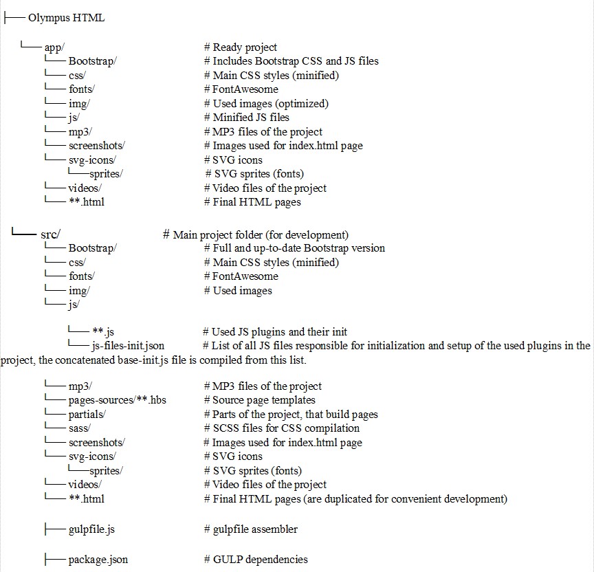 The most extensive changes were made to the GULP streaming build system, its settings, and the used plugins-modules, with help of which Olympus is built.