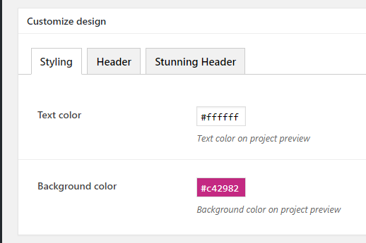 - Text color - set a color of the text that will be displayed on arhive portfolio pages
