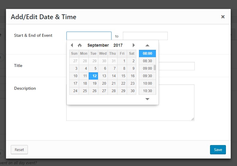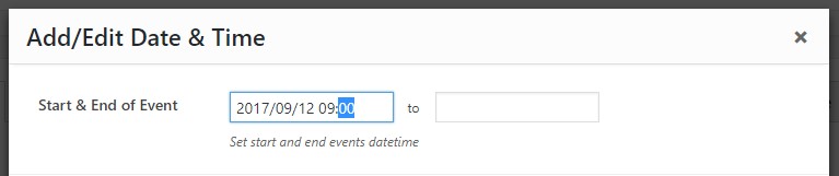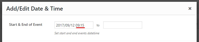 By default time step makes 30 minutes. For example: 8:00, 8:30, 9:00, 9:30 etc. If you need to set a different time, simply double click over the minutes section and enter custom value with a keyboard.
