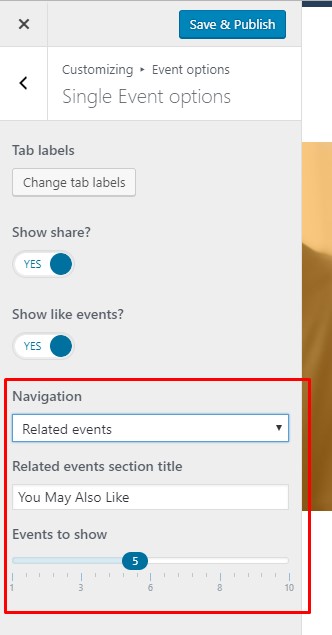 On some demo events pages you can see Related Events block at the bottom of the page.