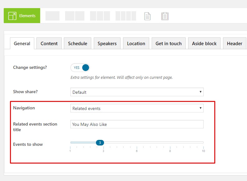 This block can be activated globally in Customize> Events options > Single Events options...