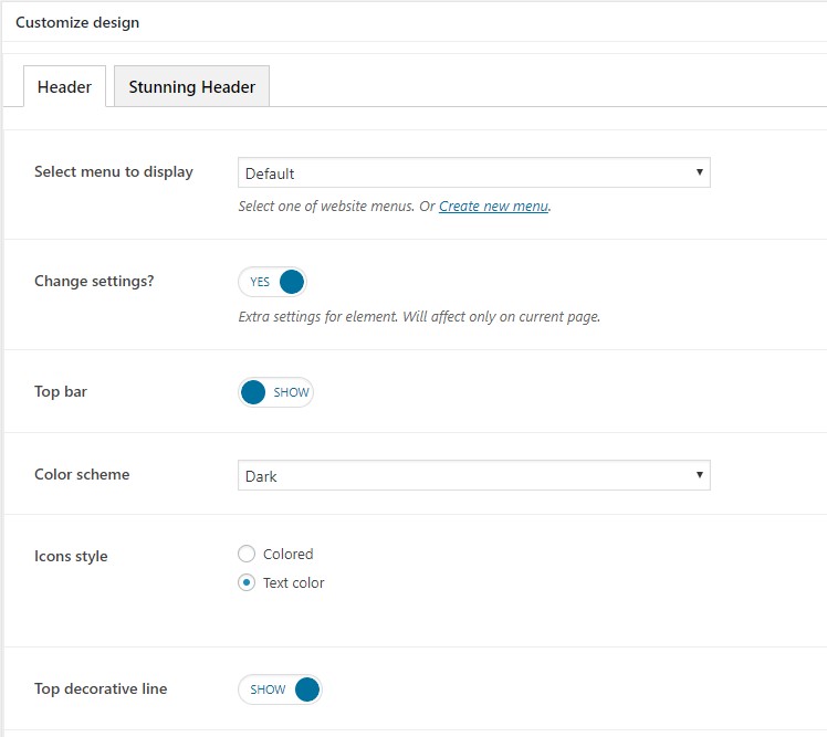 Additionally you can customize header and stunning header options for the event page. More about these settings you can read in this article.